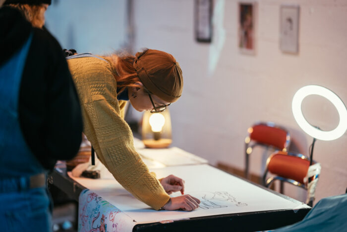 Résidents des Ateliers Éclairés, Nůn proposera un atelier de personnalisation de boules de noël en papier, la vente des productions de leur atelier et des impressions d’art.