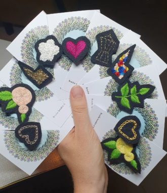 Issue d’une famille ou l’on répare plutôt que d’acheter du neuf, elle a vite été sensibilisée au reprisage et aux achats de seconde main. Aujourd’hui 90% des fils utilises sont issus de brocantes ou vide grenier. Les Arts Domestiques c’est une façon de consommer autrement, soit en réparant ses vêtements par la broderie ou en donnant du peps a un pull tout simple grâce a une broche brodée.