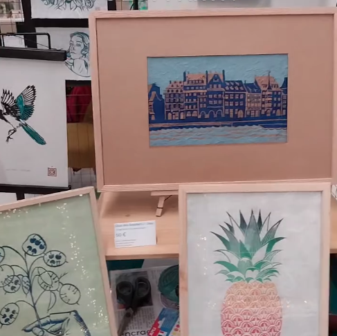 Teinte Z crée des linogravures sur chutes de linoléum, mêlant art et artisanat autour de Strasbourg, la nature et des compositions géométriques. Sur son stand, elle propose la vente de ses œuvres, des démonstrations et des ateliers d’initiation à la linogravure. Les visiteurs peuvent découvrir ses techniques et expérimenter la gravure eux-mêmes.